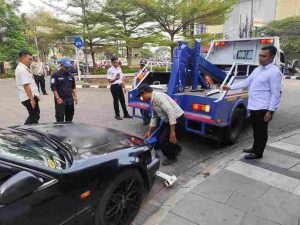 “Mobil ini hampir tiap hari parkir di sini. Tadi kami sudah menunggu sekitar setengah jam, tapi tidak ada pemiliknya yang datang. Karena sudah melanggar dan mengganggu lalu lintas, akhirnya kami derek,” ujar Muhana di lokasi.